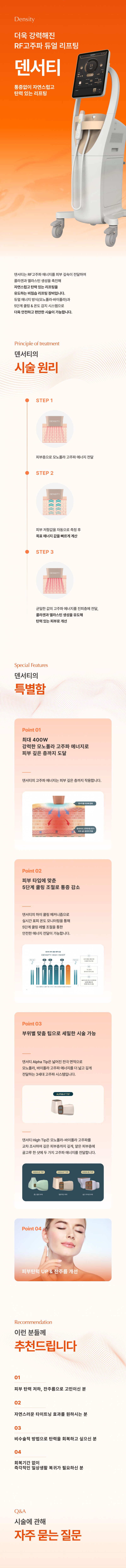 모노폴라 고주파로 피하 깊은 층에 바이폴라 고주파로 얕은 피부층에 두 가지 고주파를 전달합니다. 5단계의 섬세한 쿨링 시스템과 임피던스 피드백 기술로 피부를 보호합니다.